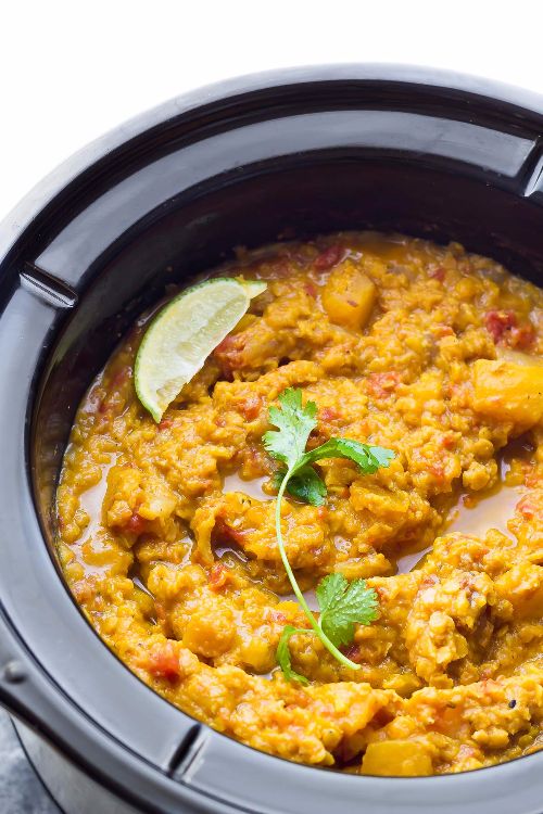 4. Slow cooker spiced lentils and cauliflower (h/t The Full Helping)Add a spicy kick to your healthy meals. You can whip up this easy recipe — or should I say your crockpot will do all the work!