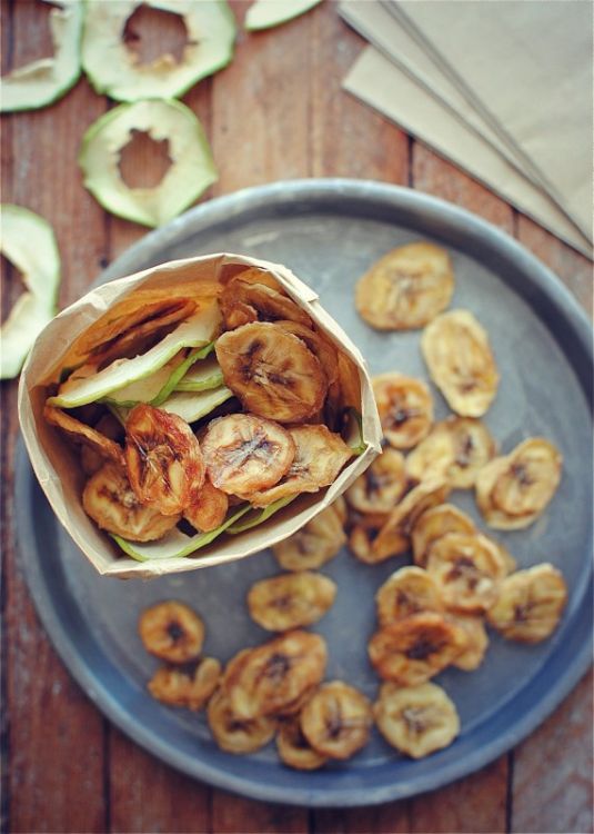 4. Dehydrated apples and bananas (h/t Bev Cooks) If you want to keep it simple, then this is the recipe for you. Simply dehydrate your browning bananas to create a crisp, unprocessed treat the entire family can enjoy.